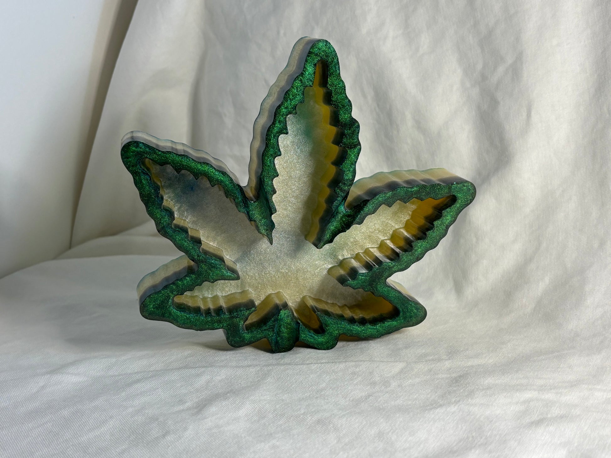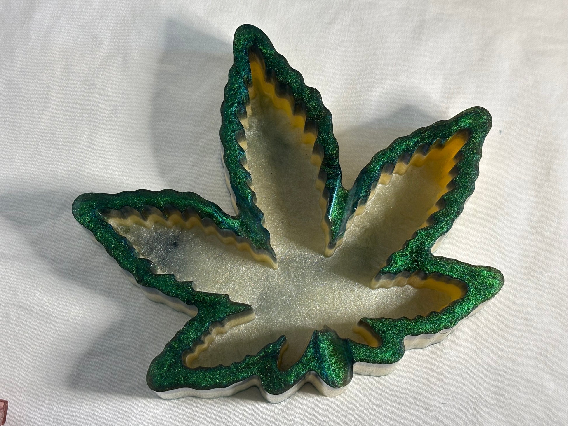 Add a touch of sparkle to your space with this handcrafted resin ashtray, featuring green and white mica powders for a vibrant, layered effect. Sleek, functional, and eye-catching, it’s perfect for your home or smoking area.